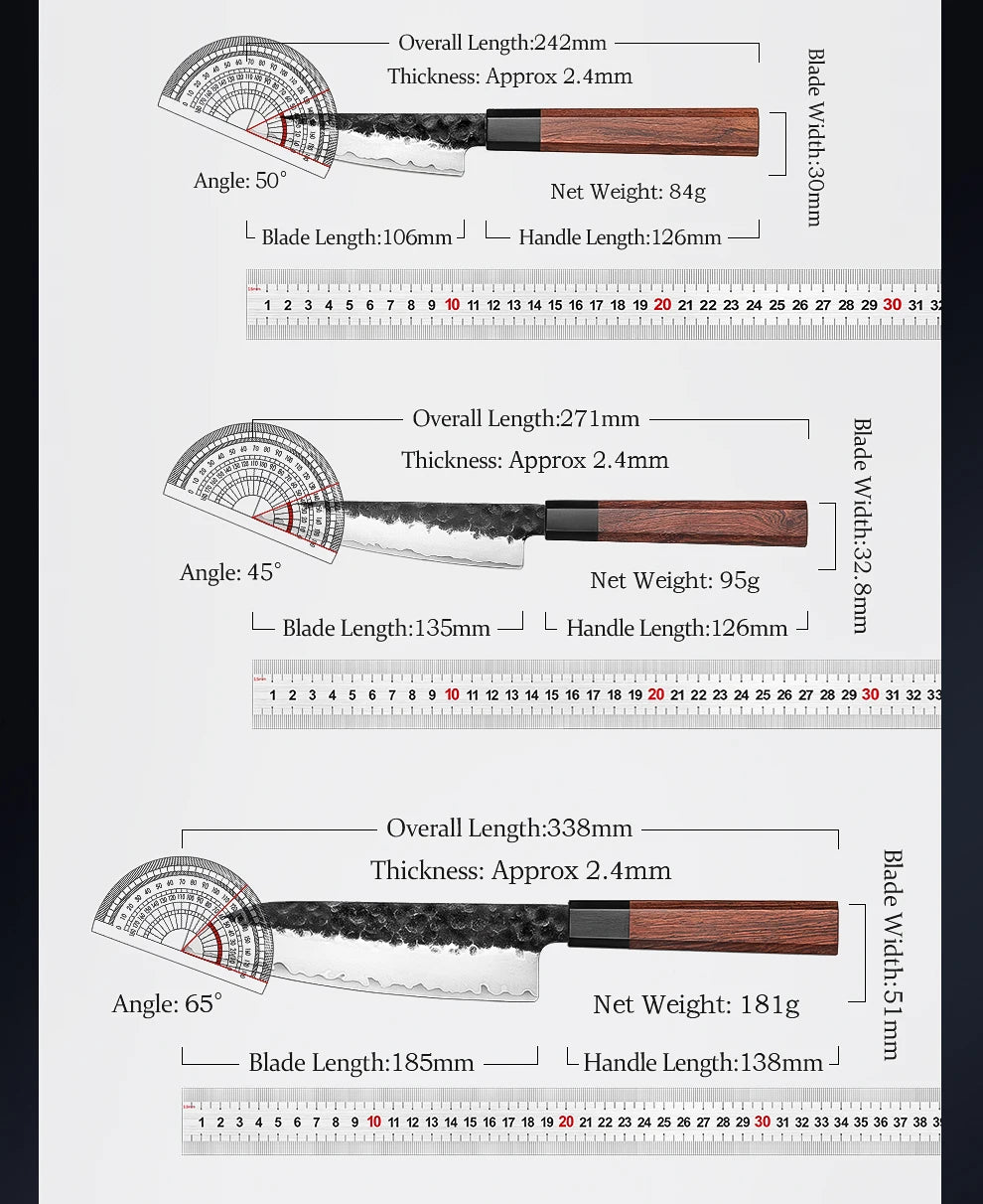 Sharp, durable, and stylish — this knife features a 3-layer composite steel blade with a 10Cr15CoMoV core, precision heat-treated for long-lasting edge retention. Its rosewood handle offers a comfortable grip, while the decorative Damascus-style pattern adds a premium look. Perfect for professional chefs and home cooking alike.
