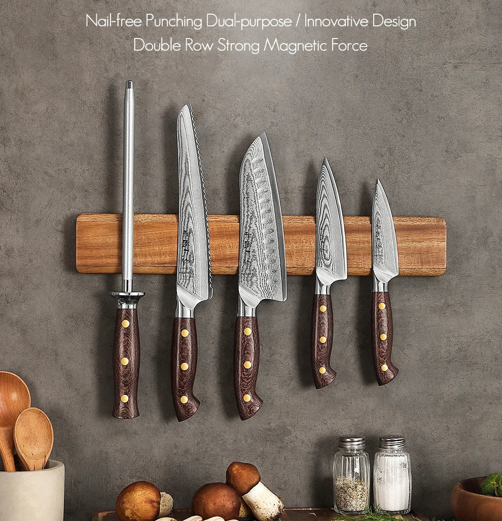 The Shinrai Magnetic Rail is crafted from premium North American maple wood, combining natural warmth with powerful performance. Built with a double-row internal magnet system, it delivers strong, even magnetic hold across the entire surface — keeping your knives securely in place while remaining easy to access.