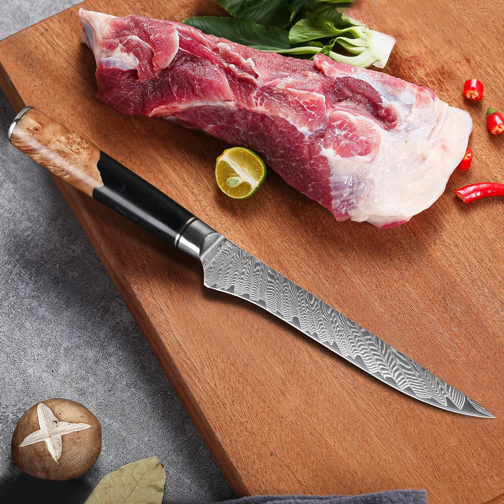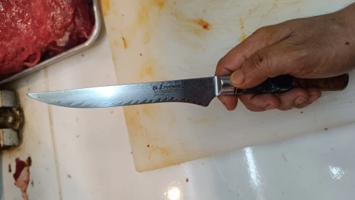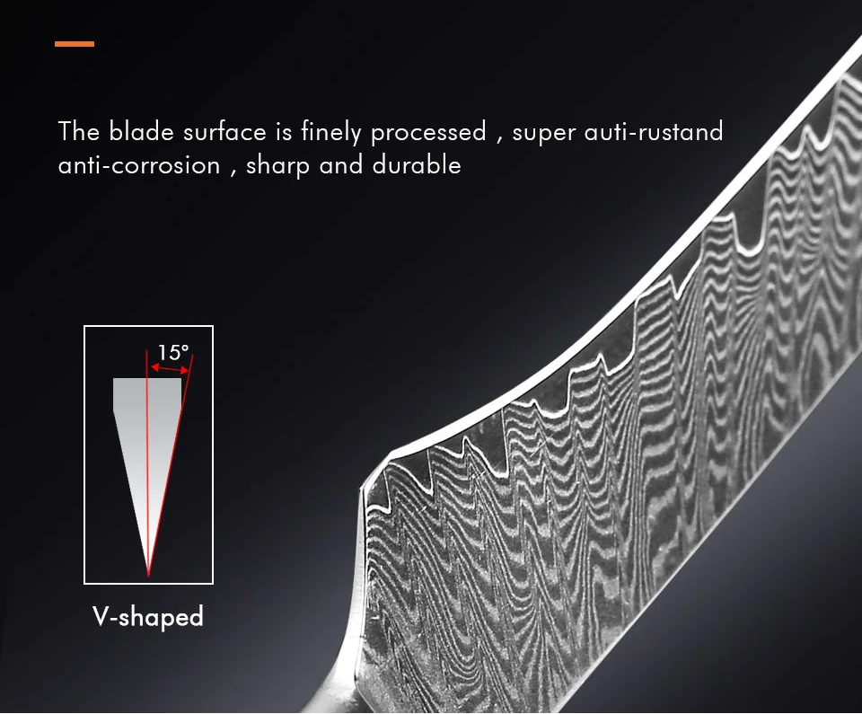 Constructed with a refined layered steel build and a hardened core rated at 60±2 HRC, this knife delivers excellent edge retention while maintaining durability for daily kitchen use. The blade is ground to a precise 15° per side, producing a razor-sharp edge that glides smoothly through meat with minimal resistance.